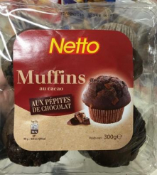 Sucre, huile de colza, farine de BLÉ 17.5% (agent de traitement de la farine : acide ascorbique, farine de MALT de BLÉ), ŒUFS, pépites de chocolat 11% [sucre, masse de cacao, beurre de cacao, émulsifiant : lécithine de SOJA, arôme naturel de vanille] (cacao : 45% minimum), stabilisants : glycérol et gomme xanthane, cacao maigre en poudre 3%, LACTOSÉRUM en poudre (dont LAIT), amidon modifié de maïs, poudres à lever : diphosphates et carbonates de sodium, chocolat (poudre), amidon de BLÉ, sel , arômes (contient alcool), protéines de BLÉ, poudre de LAIT ÉCRÉMÉ, PROTÉINES DE LAIT, conservateur: sorbate de potassium.
