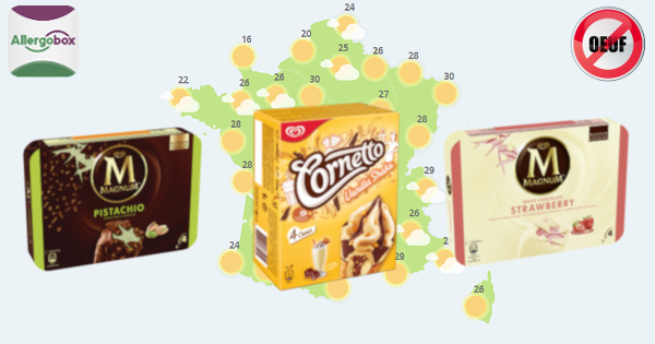 Pour se rafraichir (et se faire plaisir...) on vous propose aujourd'hui sur AllergoBox de retrouver une sélection de bâtonnets et cônes glacés SANS OEUF dans la composition principale (traces éventuelles mentionnées)