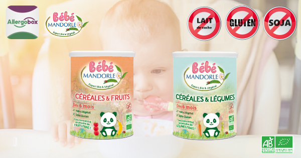 Découvrez aujourd'hui sur AllergoBox des céréales aux fruits ou légumes issus d'Agriculture Biologique SANS GLUTEN, SANS LAIT et SANS SOJA porposées par Bébé Mandorle.