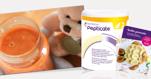 * Pepticate 2® est un ADDFMS (Aliment Diététique Destiné à des Fins Médicales Spéciales) sous contrôle médical. Pepticate 2 ® accompagne les enfants de plus de 6 mois dans le cadre d’une alimentation progressivement diversifiée. Ne peut constituer la seule source d’alimentation.