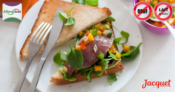 Aujourd'hui sur AllergoBox on vous propose une recette orginale de club-sandwich SANS LAIT NI OEUF, le club thon mariné !
