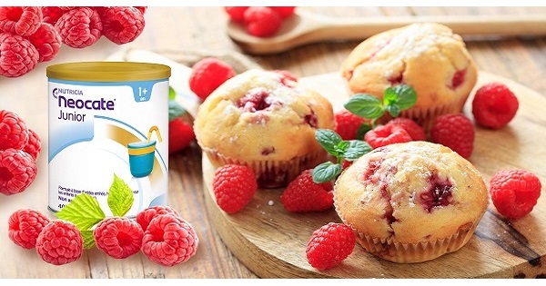 Votre médecin a prescrit Neocate® Junior à votre enfant ?  Pour profiter encore un peu des framboises avant l’automne, avec sa formule d’acides aminés, notre partenaire NUTRICIA vous propose une toute nouvelle recette ! Concoctez-lui ces MUFFINS AUX FRAMBOISES sans protéines de lait de vache !