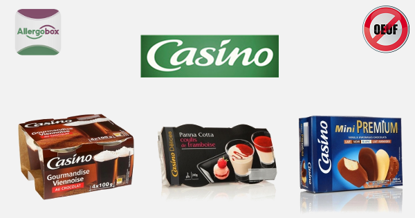 Au rayon épicerie, frais ou surgelés, découvrez aujourd'hui les nombreuses références de desserts de notre partenaire Casino, SANS OEUF dans la composition principale (traces éventuelles mentionnées pour certaines références) !