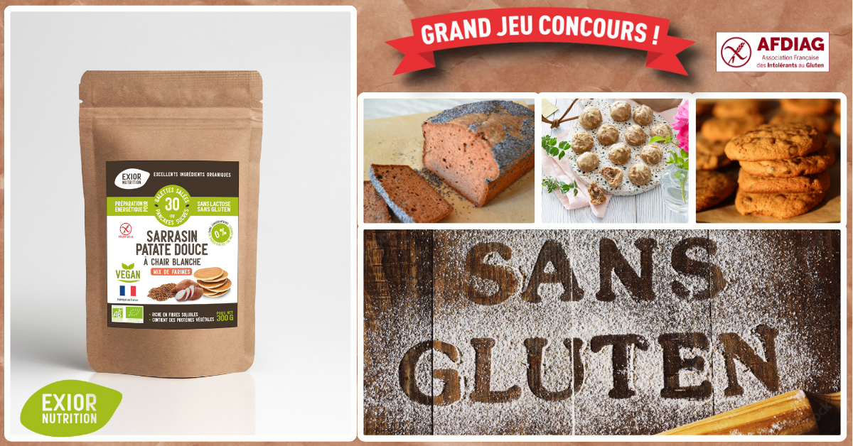 Exior Nutrition, en partenariat avec l'AFDIAG, vous offre l'opportunité de gagner son produit phare : le Mix Sarrasin et Patate Douce à chair blanche - parfait pour toutes vos recettes de pancakes, muffins, cake, pizza, cookies, beignets, pain…