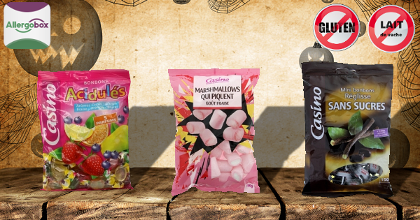 Pour fêter Halloween même en cas d'allergies ou intolérances alimentaires, retrouvez aujourd'hui sur AllergoBox une sélection de confiseries SANS GLUTEN et SANS LAIT dans la composition principale (traces éventuelles mentionnées pour certaines références) !