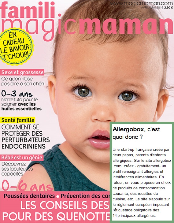 Famili, le magazine "pour super parents dans l'air du temps", publie une brève sur AllergoBox dans la rubrique "Actus santé"  du numéro 240 des mois d'avril-mai 2016!  (page 34)