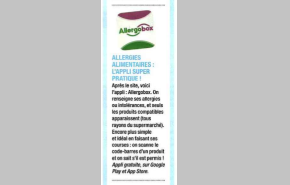Après le site, voici l'appli AllergoBox. On renseigne ses allergies ou intolérances, et seuls les produits compatibles apparaissent (tous rayons du supermarché). Encore plus simple et idéal en faisant ses courses on scanne le code-barres d'un produit et on sait s'il est permis -  Appli gratuite, sur Google Play et App Store.