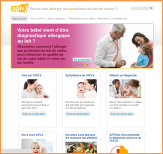 Le site internet dédié à cette pathologie, apporte à la fois des conseils afin d’évaluer les symptômes liés à l’allergie aux protéines du lait de vache auprès des enfants pour lesquels elle n’a pas encore été diagnostiquée mais aussi des informations générales, des idées de recettes ou encore des suggestions pour vivre avec l’ APLV des nourrissons et jeunes enfants.