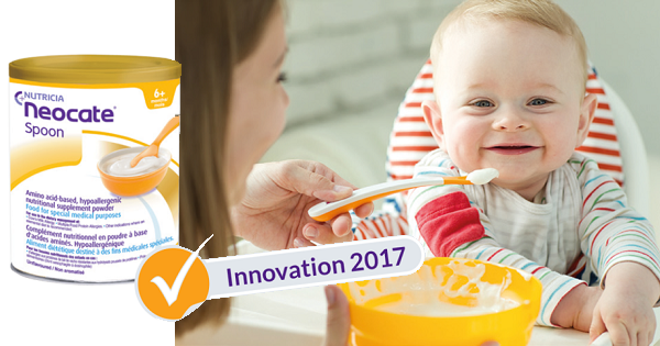 Notre partenaire NUTRICIA propose aux enfants APLV à partir de 6 mois de découvrir une nouvelle texture. Le Neocate® Spoon et sa texture à prendre à la cuillère sera disponible dès octobre. Pour plus de renseignements, demandez conseil à votre médecin.