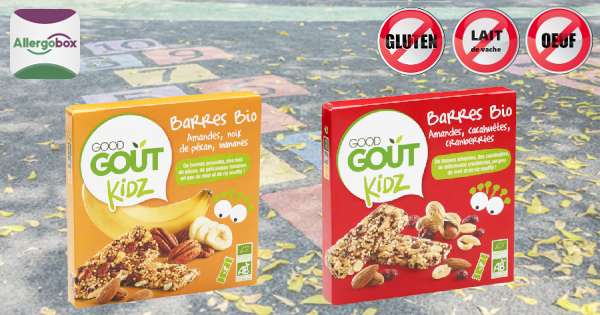 Vous cherchez des nouveautés à glisser dans le cartables de vos petites têtes blondes (au brunes :-) ) en cas d'allergiea u lait et/ou intolérance au gluten ? Découvrez aujourd'hui sur AllergoBox les nouvelles barres céréales proposées par Good Goût SANS GLUTEN, SANS LAIT et SANS OEUF