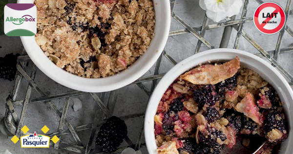 Découvrez aujourd'hui sur AllergoBox une recette de crumble de pommes (agrémenté de tout autre fruit de saison) SANS LAIT dans la composition principales (traces éventuelles mentionnées dans la référence de Grilletines).