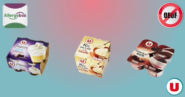 Allergobox facilite votre recherche avec une sélection de desserts SANS OEUF dans la composition principale proposée par les Magasins U (Traces éventuelles mentionnées pour certains d'entre eux).