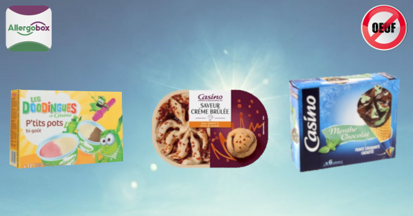 En cas d'allergie à l'oeuf, découvrez aujourd'hui sur AllergoBox une sélection de glaces SANS OEUF dans la composition principale (traces éventuelles mentionnées pour certaines références)