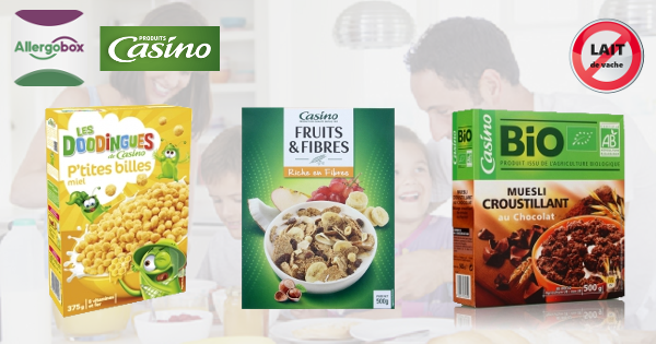 En cas d'allergie au lait, découvrez aujourd'hui sur AllergobBox une sélection de 25 références de céréales SANS LAIT dans la composition principale proposée par Casino (traces éventuelles mentionnées pour certaines références).