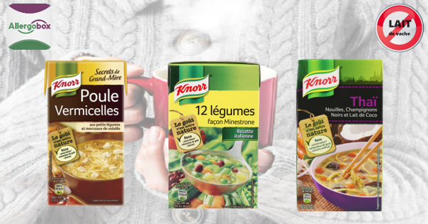 En cas d'allergie au lait, retrouvez aujourd'hui sur AllergoBox une sélection de soupes SANS LAIT (i.e sans crème, sans beurre, sans fromage...) dans la composition principale (Traces éventuelles mentionnées pour certaines références)