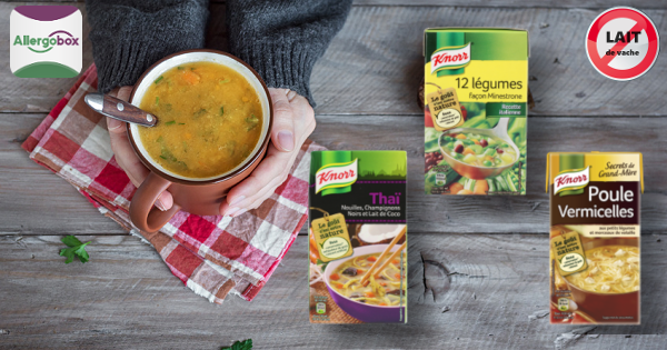 En cas d'allergie au lait, retrouvez aujourd'hui sur AllergoBox une sélection de soupes SANS LAIT (i.e sans crème, sans beurre, sans fromage...) dans la composition principale (Traces éventuelles mentionnées pour certaines références)