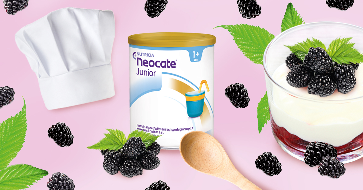 Votre médecin a prescrit Neocate® Junior à votre enfant ? Réalisez une recette toute en fraicheur et d’inspiration italienne avec la Panacotta à la mûre de notre partenaire NUTRICIA. Un dessert digne des plus grands chefs pour régaler bébé ! Et pour les petits gourmands de plus de 3 ans, n’hésitez pas à utiliser le Neocate® Junior arôme vanille pour lui apporter de nouvelles saveurs.
