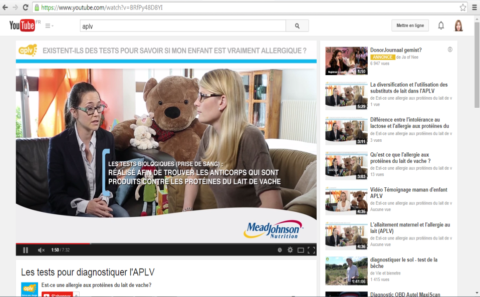 Afin d’aider les parents déstabilisés par l’APLV, en recherche active d’informations parfois difficiles à collecter, Mead Johnson Nutrition les accompagne au quotidien en leur proposant la chaîne YouTube  « Est-ce une allergie aux protéines du lait de vache? » donnant accès à des informations pédagogiques sur l’APLV.