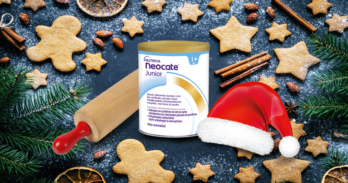 Votre médecin a prescrit Neocate® Junior à votre enfant ? Pour les fêtes de fin d’année, notre partenaire NUTRICIA vous propose de préparer des biscuits sablés pour un plaisir sucré à partager ! N’oubliez-pas d’en laisser un au Père Noël, il en aura besoin pour se requinquer et poursuivre sa tournée !