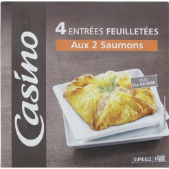 4 Entrées feuilletées aux 2 saumons surgelé Pâte Pur Beurre4 Entrées feuilletées aux 2 saumons surgelé Pâte Pur Beurre