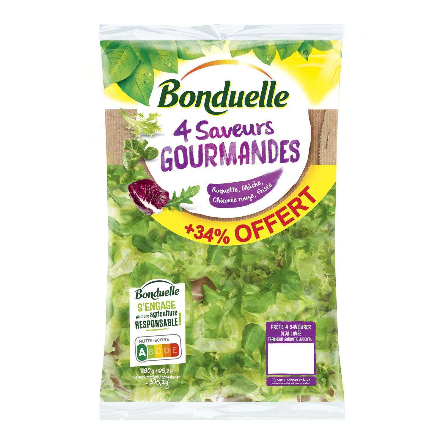 Ingrédients: Frisée (mini 30%), mâche (mini 10%), chicorée rouge (mini 5%), roquette (mini 5%)