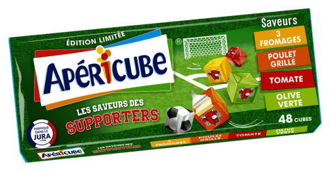 Les ingrédients de vos bons petits cubes : du LAIT ÉCRÉMÉ réhydraté (origine : France), des FROMAGES (dont 13% de bleu dans les cubes bleu & NOIX), du BEURRE, des PROTÉINES DE LAIT, des sels de fonte (polyphosphates, citrates de sodium et acide citrique), indispensables pour lier les ingrédients et obtenir une texture onctueuse, un arôme naturel et du sel dans les cubes bleu & NOIX, poulet grillé et chorizo.