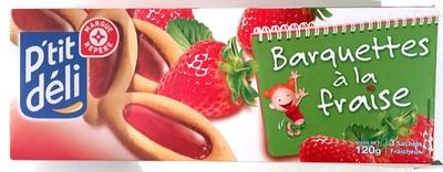 Sucre ; Farine de BLÉ ; Sirop de glucose-fructose ; OEUFS ; Purée de fraise 5% ; Purée de pomme 5% ; Jus concentré de fraise 1% (équivalent à 9 % de fraise) ; Stabilisant : sorbitols ; Gélifiant : pectines ; Huile de colza ; Sirop de glucose ; Acidifiant : acide citrique ; Sel ; Arômes ; Correcteurs d'acidité : E331, lactate de calcium ; Colorant : anthocyanes.