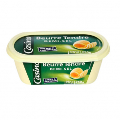 BEURRE [CRÈME DE LAIT pasteurisée (origine : UE), ferments lactiques (contient LAIT)], sel (3% max). Les informations en majuscules sont destinées aux personnes intolérantes ou allergiques.