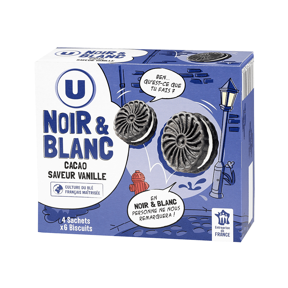 Biscuits au cacao fourrés saveur vanilleBiscuits au cacao fourrés saveur vanille