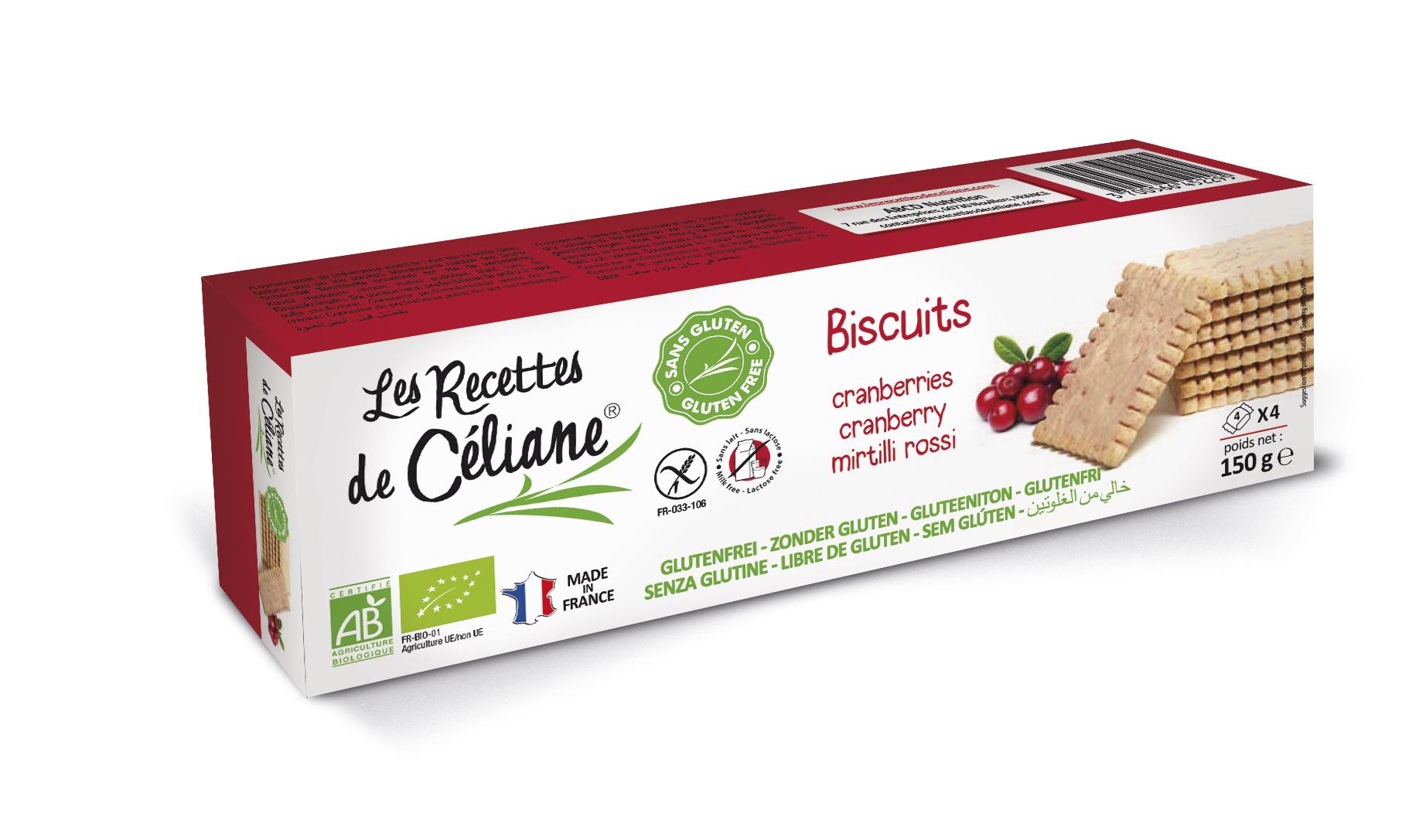 Farine de riz*, huile de palme non hydrogénée*, amidon de maïs*, farine de maïs*, sirop de glucose* (maïs), sucre de canne blond*, eau, farine de sarrasin*, cranberries* (3%), miel*, fécule de pomme de terre*, sel, émulsifiant : lécithine de tournesol, poudre levante : bicarbonate de sodium, arôme naturel*. *ingrédients issus de l'agriculture biologique.