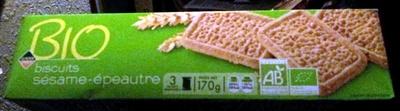 Farine de BLÉ*, sucre*, huile de palme*, farine d'ÉPEAUTRE * 17 %, GRAINES DE SÉSAME * 11 %, amidon de BLÉ*, poudre de LAIT ÉCRÉMÉ*, poudres à lever : carbonates de sodium, carbonates d'ammonium, sel marin, arôme naturel de vanille. * ingrédients issus de l'agriculture biologique.