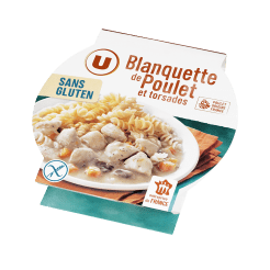 Blanquette de poulet et spécialité céréalière à base de farines de maïs et de riz sans glutenBlanquette de poulet et spécialité céréalière à base de farines de maïs et de riz sans gluten