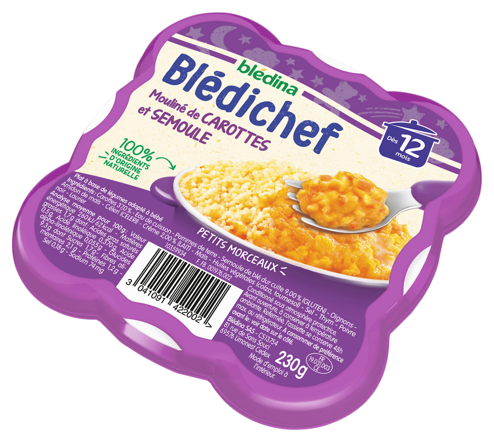 BLEDICHEF 230g Mouliné de Carottes et Semoule Dès 12 moisBLEDICHEF 230g Mouliné de Carottes et Semoule Dès 12 mois