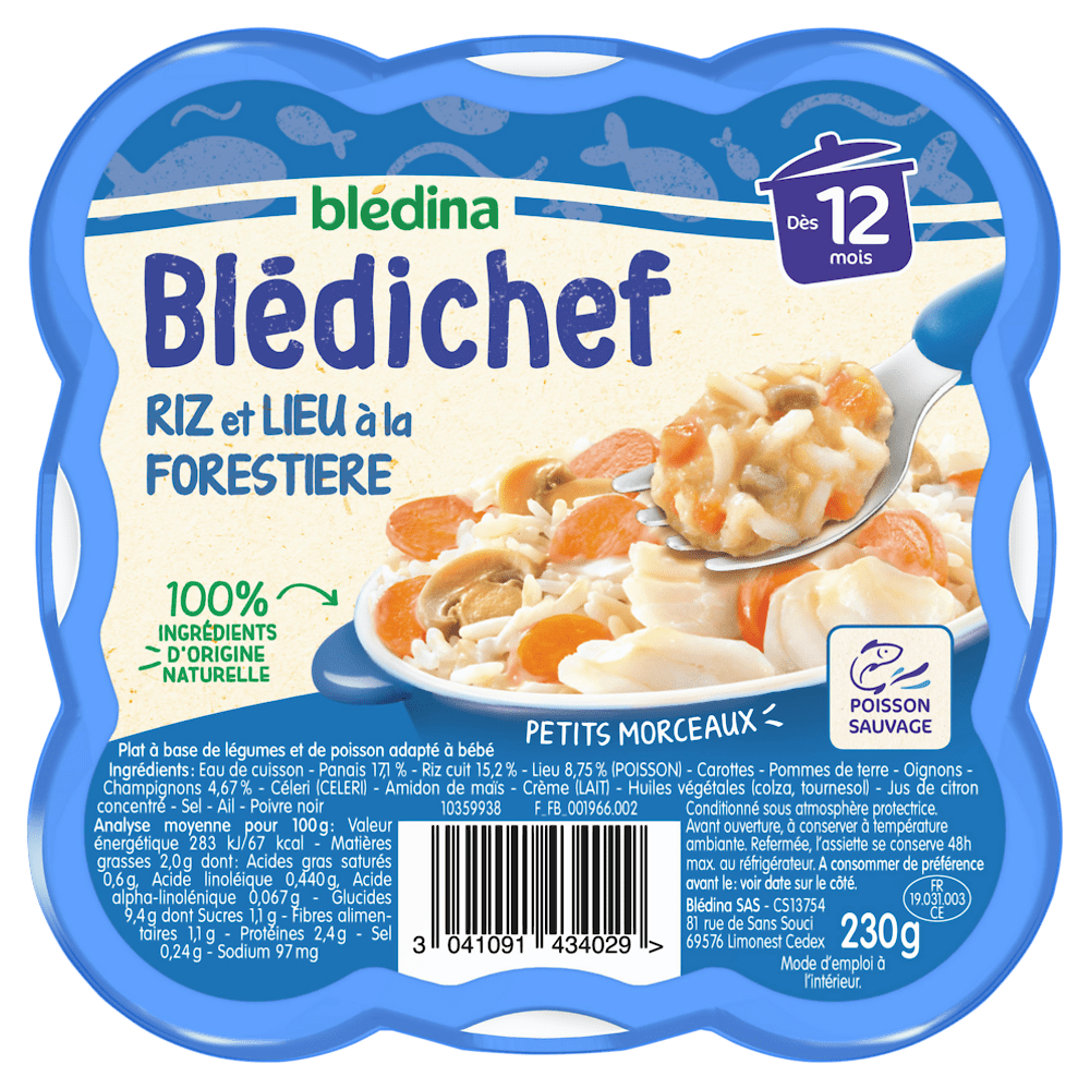 BLEDICHEF 230g Riz et Lieu à la Forestière Dès 12 moisBLEDICHEF 230g Riz et Lieu à la Forestière Dès 12 mois