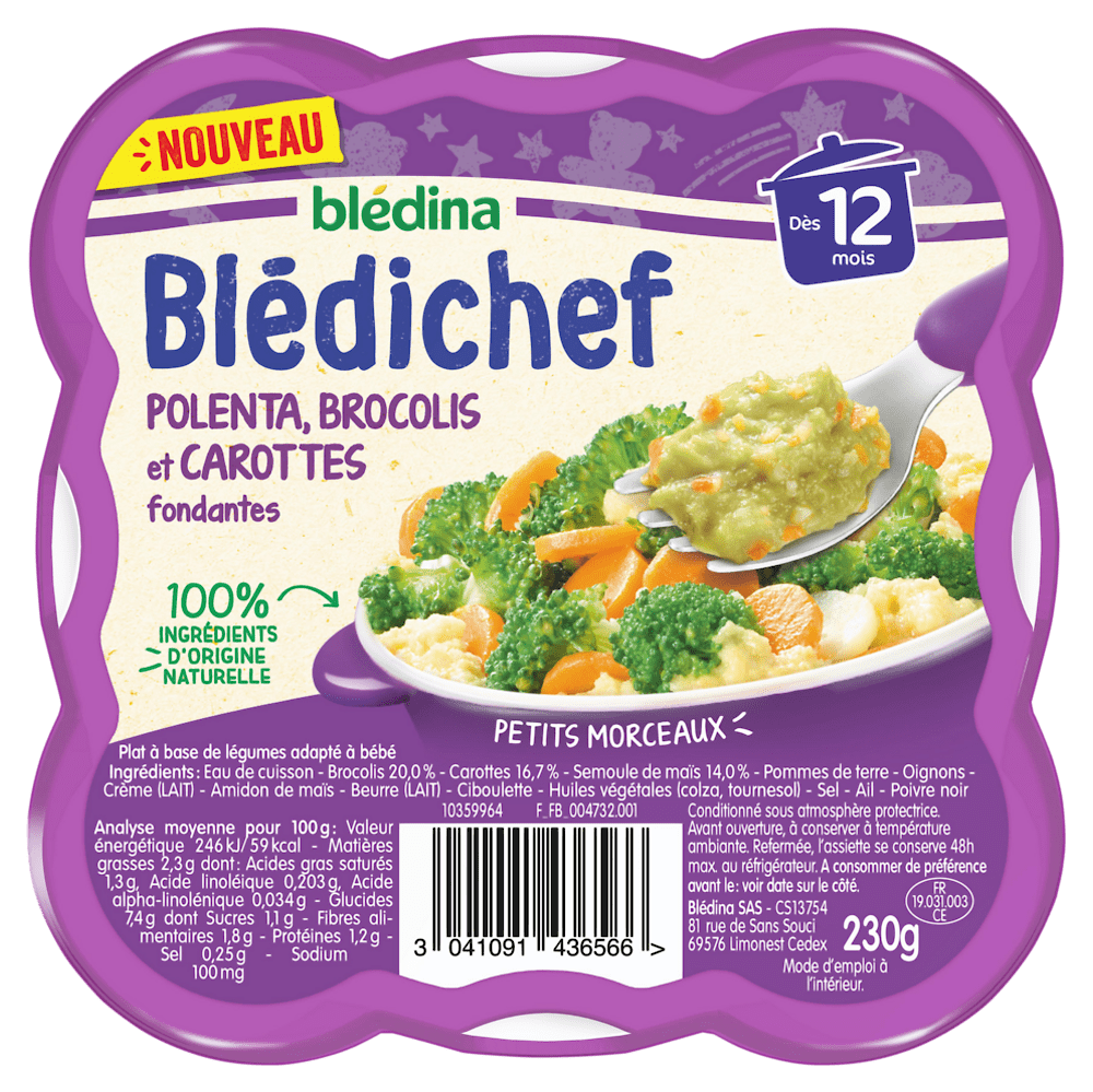 BLEDINA BLEDICHEF Polenta, Brocolis et Carottes Fondantes 230g Dès 12 MoisBLEDINA BLEDICHEF Polenta, Brocolis et Carottes Fondantes 230g Dès 12 Mois