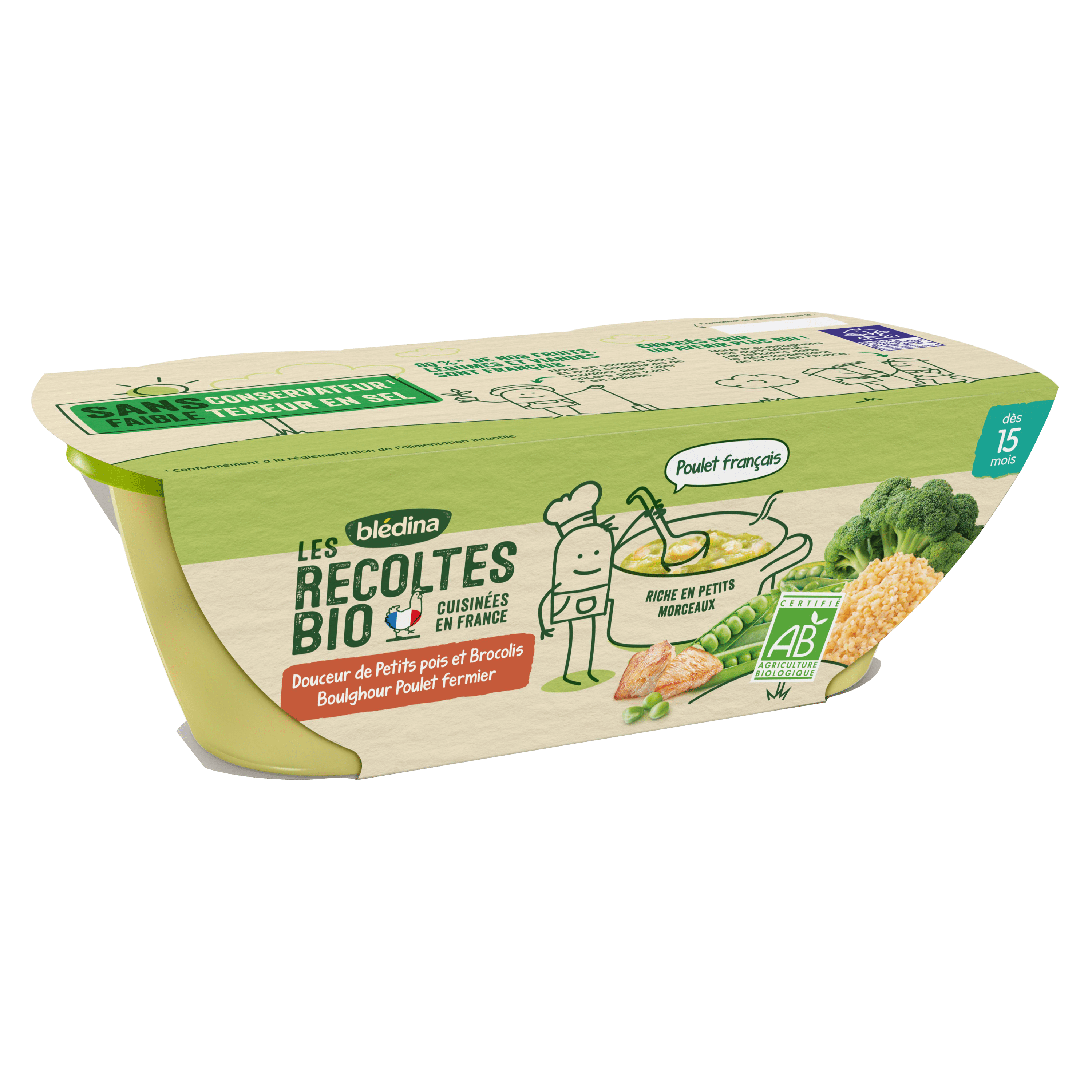 BLEDINA LES RECOLTES BIO Douceur de Petits Pois et Brocolis Boulghour Poulet Fermier 2x200g Dès 15 MoisBLEDINA LES RECOLTES BIO Douceur de Petits Pois et Brocolis Boulghour Poulet Fermier 2x200g Dès 15 Mois
