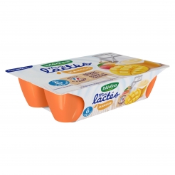 LAIT ÉCRÉMÉ et PETIT-LAIT fermentés réhydratés 68,0 % (LAIT) - purée de mangue 10,0 % - CRÈME (LAIT) - eau - sucre - amidon transformé de maïs - arômes naturels - épaississant : farine de graines de caroube - acidifiant : acide citrique - émulsifiant : monodiglycérides de colza - vitamine c