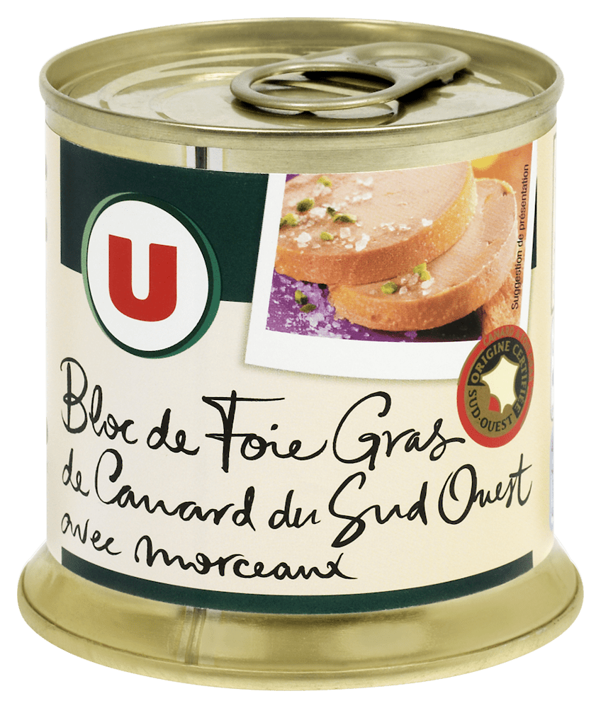 Bloc foie gras canard IGP SO avec 30%morceaux U bte fer 200gBloc foie gras canard IGP SO avec 30%morceaux U bte fer 200g