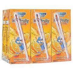 Eau, jus de fruits à base de concentrés (orange 10,5%, pomme 1,8%), sucre, acidifiant : acide citrique, arôme naturel d'orange avec autres arômes naturels, arômes naturels, antioxydant : acide ascorbique, stabilisant : farine de graines de caroube, colorant : bêta-carotène