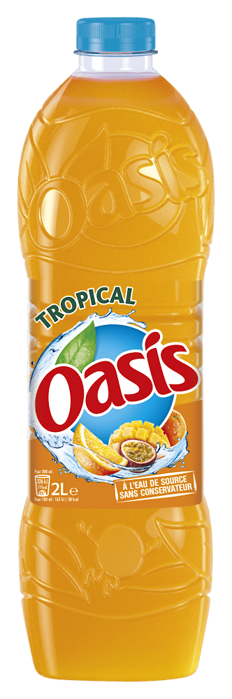 Boisson rafraîchissante aux fruits et à l'eau de source. Eau de source 80% jus de fruits à base de concentrés 12% (orange 6,4%, pomme 5,5%, fruit de la passion 0,1%, mangue 0,07%) sucre acidifiant : acide citrique arômes antioxydant : acide ascorbique stabilisant : gomme d'acacia colorant : extrait de paprika