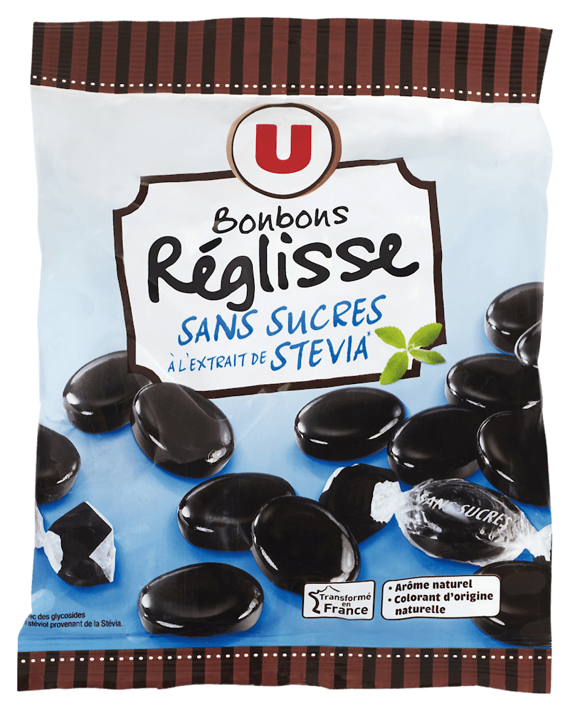 Bonbons à la réglisse sans sucre stevia U sachet 120gBonbons à la réglisse sans sucre stevia U sachet 120g