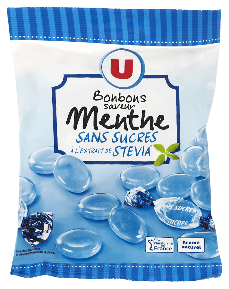 Bonbons menthe sans sucres aux extraits de stévia U 120gBonbons menthe sans sucres aux extraits de stévia U 120g