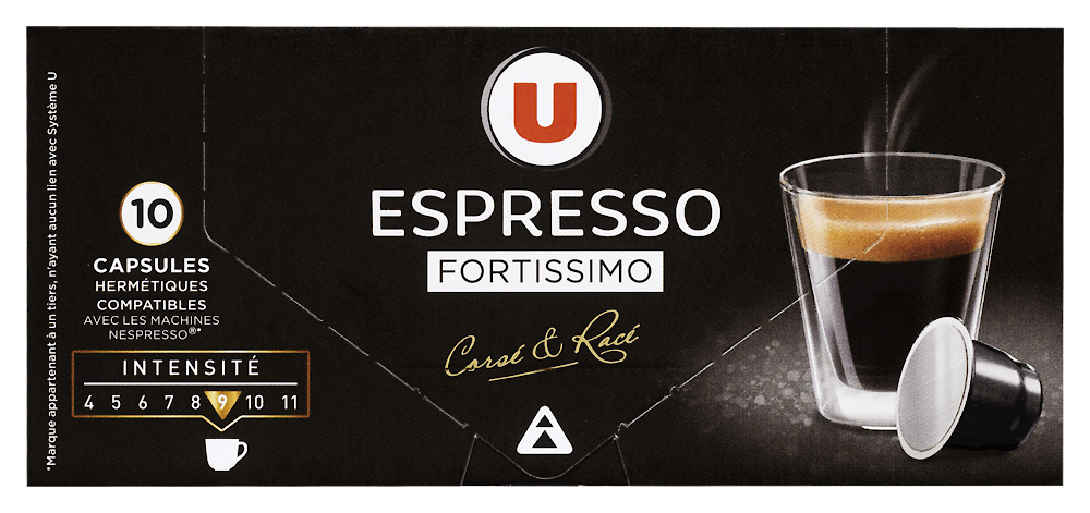 Café espresso fortissimo U x10 capsules 52gCafé espresso fortissimo U x10 capsules 52g