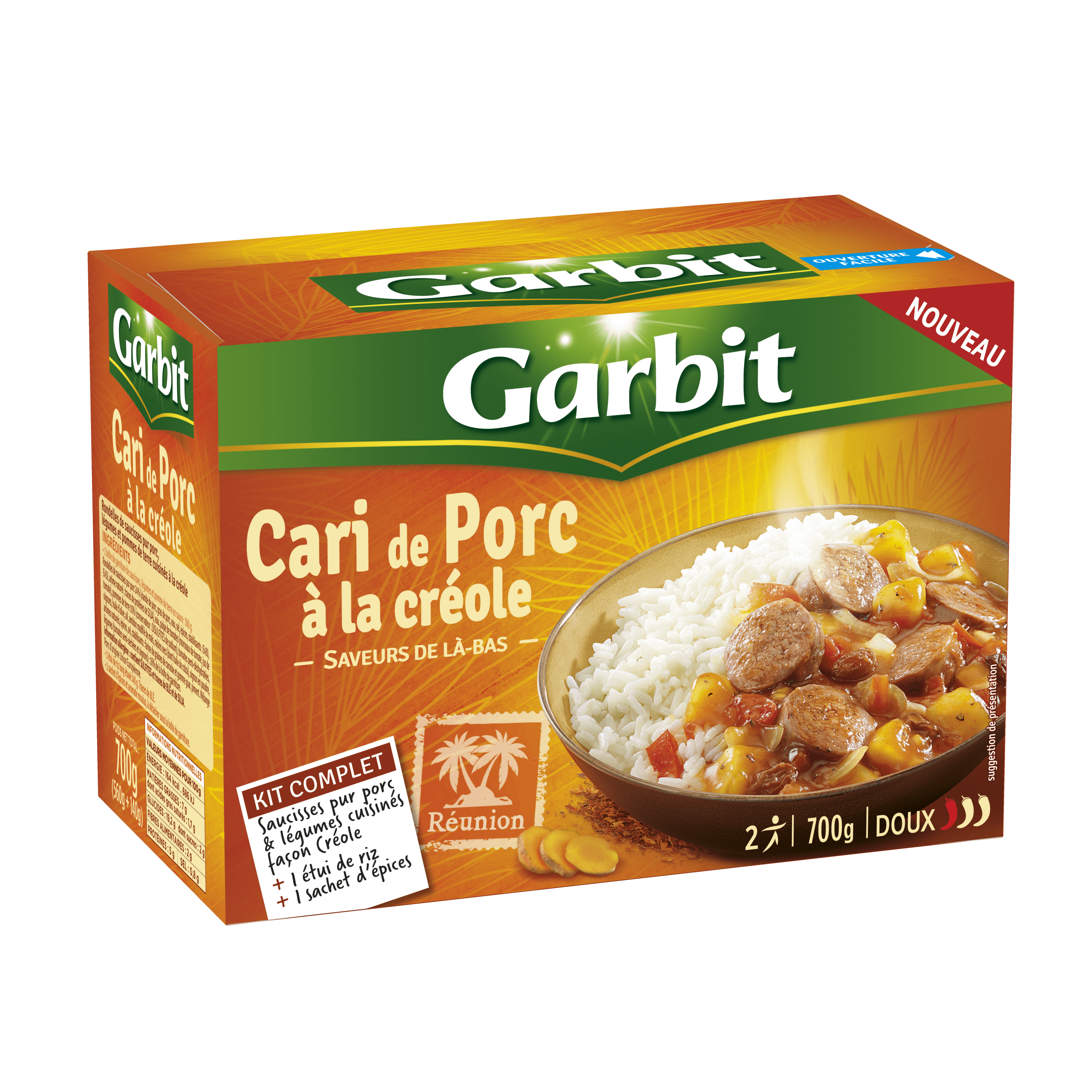 Ingrédients : • 1 boîte de garniture de saucisses, légumes et pomme de terre en sauce : 560 g Rondelles de saucisses pur porc 24% (viande de porc, gras de porc, eau, sel, épices, stabilisants: E450, E452, arôme naturel ; traces de protéines de SOJA), eau, pulpe de tomates (morceaux de tomate, jus de tomate), pommes de terre 10% (conservateur: DISULFITES de sodium), tomates semi-déshydratées, oignons, huile d'olive, ail, amidon modifié de maïs, raisins secs (dont huile de colza), oignon en poudre, arômes naturels, épices, sel, stabilisants: farine de graines de caroube et gomme guar, piment. Mélange légumes (tomates semi-séchées et oignons) : 16% de la boîte de garniture. Porc d'origine Union Européenne • 1 étui de riz long étuvé 140 g. • 1 sachet d'épices et aromate moulus, à détacher sous la boîte de garniture.