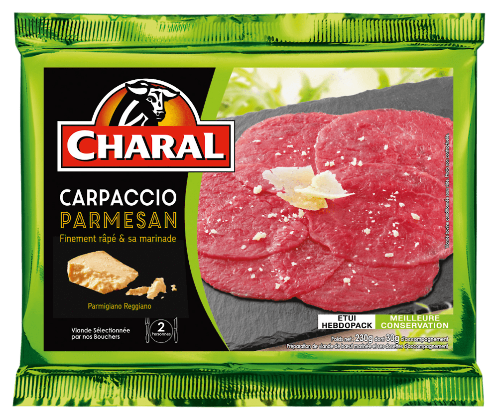 Carpaccio bœuf parmesan & marinade CHARALCarpaccio bœuf parmesan & marinade CHARAL