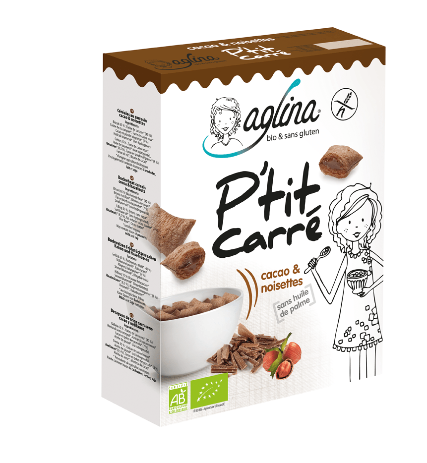 Céréales Bio et sans gluten petit déjeuner 'P'tits carrés' sarrasin-fourré cacao & noisettesCéréales Bio et sans gluten petit déjeuner 'P'tits carrés' sarrasin-fourré cacao & noisettes