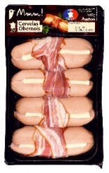 Cervelas 79% (viande de porc 45%, eau, gras de porc, viande bovine 3,5%, sel, arômes, stabilisants : triphosphates, diphosphates ; sirop de glucose, dextrose, épices et plantes aromatiques, antioxydants : acide érythorbique, érythorbate de sodium ; conservateur : nitrite de sodium. Fumé au bois de hêtre), poitrine fumée 14% (poitrine de porc traitée en salaison 13%, sel, conservateurs : lactate de potassium, nitrite de sodium, dextrose, antioxydant : érythorbate de sodium. Fumée au bois de hêtre), FROMAGE 7% (FROMAGE (LAIT), PROTÉINES DE LAIT, BEURRE (LAIT), LACTOSÉRUM (LAIT) , sels de fonte : citrate de sodium, polyphosphates). pourcentages exprimés sur le total de la recette. elaboré à partir de porc origine France, de bœuf origine France et de LAIT origine UE.