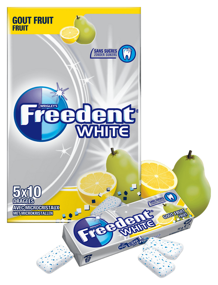 Chewing-gum s/ sucres goût fruits WHITE FREEDENTChewing-gum s/ sucres goût fruits WHITE FREEDENT