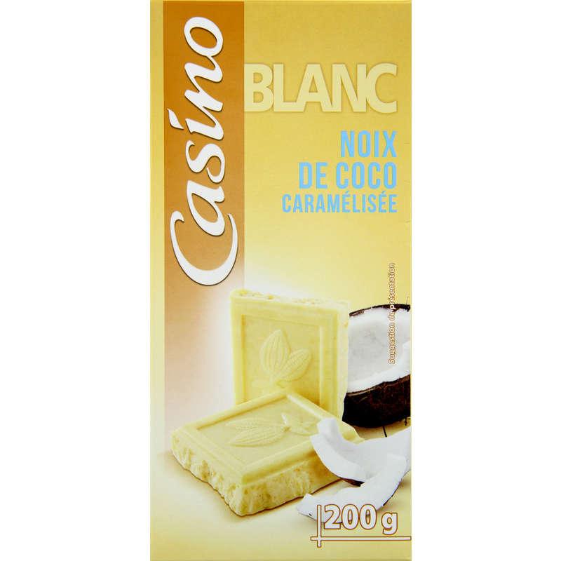 Chocolat blanc à la noix de coco râpée caraméliséeChocolat blanc à la noix de coco râpée caramélisée
