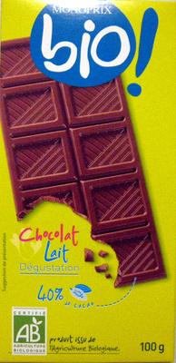 Chocolat lait dégustation 100g Casino bio / LP bio / Monoprix bio / Franprix – Pur beurre de cacaoChocolat lait dégustation 100g Casino bio / LP bio / Monoprix bio / Franprix – Pur beurre de cacao